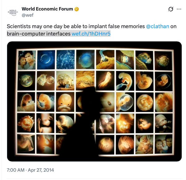 There are those who have attempted to construct the technological basis for implanting false memories of events that never occurred; those individuals are transparent in their agenda, which is the wholesale manipulation of human populations towards an agenda of forced virtue towards the ends of climate change and globalism. Such individuals and the organizations and ideologies they serve freely admit that they lack the technological basis to implant false memories, and seem gleeful in their rush to run past the ethical implications of such technology and its application.